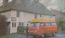 The original post office opened in 1847 and was run by church warden Tom Clements from a building next to the rectory.[66] The building, which now forms part of a Grade II* listed private dwelling, is thought to be the second-oldest surviving post office building in England with a service dating from 1847.[67][68][69] The post office briefly moved to another location in The Street under the stewardship of local schoolmistress Fanny Harris (who operated the service from 1926); however, it returned to the original site in 1946 under the new sub-postmistress Irene Bugden and was run as a small general stores until it closed in 1976.[67] Fanny Harris (then 92 years old and the village's oldest inhabitant) and Robin Leigh-Pemberton were passengers on the first postbus service on 4 March 1974.[68] A new post office and stores operated at a different property in the village for a further 20 years until it was closed in the 1990s.[70] Today, the village retains only the Blacksmiths Arms and a traditional red post box.