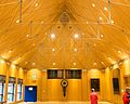 Within the hall, its cloisters to the right-hand side lead via a circular staircase to the first floor where its Court Room, Committee Room and a luncheon room lead off a reception gallery. The reception gallery leads to the banquet hall, which has a high vaulted ceiling and is entirely oak-panelled. There are also offices for company staff, facilities for catering staff with storage and cellars below the hall, together with accommodation for the Master and the Beadle. The Clerk to the Haberdashers' Company, 2013–2020, is Commodore Philip Thicknesse RN, and the Revd Canon David Parrott serves as Honorary Chaplain.[4]