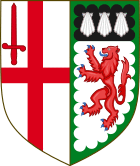 Haberdashers' Arms: Barry nebulée of six argent and azure, on a bend gules a lion passant guardant or | |