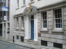 The livery company's hall is situated between Huggin Hill and Little Trinity Lane, in the ward of Queenhithe.