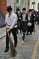 The Worshipful Company of Vintners elects its new Master each year in July, and this is celebrated with a special service at the Church of St James Garlickhythe, which is just across the road from their Hall. The Procession starts at Vintners Hall with the Master and Wardens in Tudor dress carrying nosegays. Their path is swept by a wine porter using a birch broom.