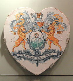 The Society was granted Arms by William Camden (Clarenceux) on 12 December 1617, less than a week after receiving its Royal Charter – the efficiency possibly indicating some planning of the break from the Grocers' Company. The Society was not as speedy in settling its bill from the College of Arms however, as payment for the grant was not directed by the Court until April 1620.[4]