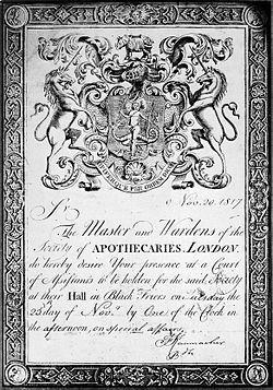 - ^ "Apothecary Archive Family History". Society of Apothecaries. Retrieved 7 November 2014.