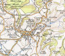 The "Edge" refers to the limestone escarpment of the Cotswold Edge which includes the hills of Wotton Hill and Tor Hill that flank the town. In the 1086 Domesday Book listing, Wotton was in the hundred of Dudstone.[3]