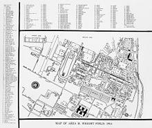 The area's World War II Army Air Fields had employment increase from approximately 3,700 in December 1939 to over 50,000 at the war's peak.[18] Wright Field grew from approximately 30 buildings to a 2,064-acre (8.35 km2) facility with some 300 buildings and the Air Corps' first modern paved runways. The original part of the field became saturated with office and laboratory buildings and test facilities. The Hilltop area was acquired from private landowners in 1943–1944 to provide troop housing and services. The portion of Patterson Field from Huffman Dam through the Brick Quarters (including the command headquarters in Building 10262) at the south end of Patterson Field along Route 4 was administratively reassigned from Patterson Field to Wright Field. To avoid confusing the two areas of Wright Field, the south end of the former Patterson Field portion was designated "Area A", the original Wright Field became "Area B", and the north end of Patterson Field, including the flying field, "Area C."