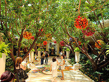 The Wynn Plaza shopping complex, a large expansion of the Wynn Las Vegas and Encore Las Vegas, opened November 9, 2018.[3] The shopping complex moves the Wynn properties closer to Las Vegas Boulevard. Tenants include upscale stores such as Balmain, Celine, Kiton, Stella McCartney and restaurants including Urth Caffé and Cipriani. Wynn Paradise Park was planned to be built on the site of a golf course adjacent to Wynn Las Vegas and Encore Las Vegas. The 20-acre lagoon, boardwalk, waterfront meeting space, and other features was expected to draw additional traffic to the hotels. The project was abandoned in November 2018.[4] Instead, Wynn Las Vegas revamped its 18-hole championship golf course, which reopened in October 2019.[5]