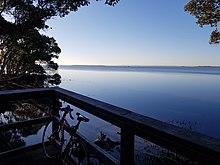 The Bayside Parklands provide public access to 16 kilometres (9.9 mi) of shoreline including mangroves, mudflats and wetlands. Many migratory shorebirds can be seen from the parklands as Moreton Bay is a Ramsar site. Next to the Wynnum Wading Pool which has a playground and water park and the Wynnum Jetty, there is a man-made beach called Pandanus Beach.[44]