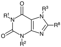 - ^ Daly JW, Hide I, Müller CE, Shamim M (1991). "Caffeine analogs: structure-activity relationships at adenosine receptors". Pharmacology. 42 (6): 309–21. doi:10.1159/000138813. PMID 1658821.