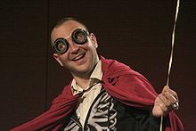 Another recurring character is a man with a beret, sometimes simply referred to as "Beret Guy". He seems to be naive, obsessed with bakeries, optimistic, and completely out of touch with reality. He also has magical abilities,[24] which often manifest in the creation of situations or objects that support his overly optimistic worldview, even when in direct violation of societal norms or the laws of physics; an example is his startup making incredible amounts of money despite his not even knowing what they do. In one instance, he hired Lin-Manuel Miranda as an engineer and, in another instance, sprouted literal "endless wings".[‡ 17]
