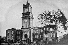 The educational institutions founded by the Catholic church led to Xujiahui's reputation as a center of education. The Aurora University was founded by the Jesuits in Xujiahui. The imperial Nanyang Public School system was founded in Xujiahui at the end of the 19th century, and the historic main campus of its most prominent descendent school, Jiao Tong University, one of Shanghai's most prestigious, is still located in Xujiahui. Fudan University, also one of Shanghai's most prestigious, was located in Xujiahui until 1922.