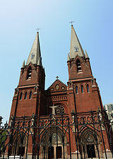 In time, it became a stronghold of Catholics in East Asia. One of the first structures to be built by the Jesuits was the St. Ignatius Cathedral in 1847, later reconstructed in 1906. The Cathedral is located on what is now known as North Caoxi Road and is still referred to in English as the St. Ignatius Cathedral. The sign on the street calls it simply "Catholic Church." The cathedral was featured in the opening scenes of Steven Spielberg's 1987 film Empire of the Sun.