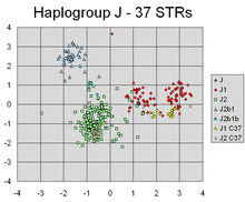 The original scientific research was based on the hypothesis that a majority of present-day Jewish Kohanim share a pattern of values for six Y-STR markers, which researchers named the Cohen Modal Haplotype (CMH).[1] Subsequent research using twelve Y-STR markers indicated that about half of contemporary Jewish Kohanim shared Y-chromosomal J1 M267, (specifically haplogroup J-P58, also called J1c3), while other Kohanim share a different ancestry, such as haplogroup J2a (J-M410).