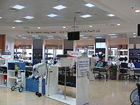 As of 2011, Yad Sarah operates 103 equipment-lending branches throughout Israel. These are located in cities, development towns, and Arab villages,[6] hospitals and private homes.[14][15] Altogether, the branches stock approximately 300,000 items and 300 types of medical and rehabilitative equipment, including wheelchairs, crutches, beds and oxygen tanks.[13][16] Yad Sarah's six-story[2] Jerusalem headquarters and central warehouse on Herzl Blvd. occupies a full city block.[3]