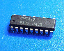 The YM2413, a.k.a. OPLL, is a cost-reduced FM synthesis sound chip manufactured by Yamaha Corporation and based on their YM3812 (OPL2). To make the chip cheaper to manufacture, many of the internal registers were removed. The result of this is that the YM2413 can only play one user-defined instrument at a time; the other 15 instrument settings are hard-coded and cannot be altered by the user. There were other cost-cutting modifications: the number of waveforms was reduced to two, and the channels are not mixed using an adder; instead, the chip's DAC uses time-division multiplexing to play short segments of each channel in sequence, as also done in the YM2612.