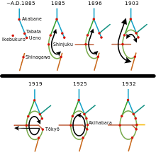 - ^ a b Ishino, Tetsu, ed. (1998). 停車場変遷大辞典 国鉄・JR編 [Station Transition Directory - JNR/JR]. I. Japan: JTB. p. 89. ISBN 4-533-02980-9.
