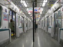 Prior to the E235 series, the line's services were operated by E231-500 series EMUs, which were in use from April 21, 2002[11] to January 20, 2020. These trains originally each included two "six-door cars" with six pairs of doors per side and bench seats that were folded up to provide standing room only during the morning peak until 10 a.m. From February 22, 2010, the seats were no longer folded up during the morning peak,[12] and all trains were standardized with newly built four-door cars by 31 August 2011.[13] This was due to reduced congestion on the line as well as preparation for the installation of platform doors on all stations by 2017.[14]