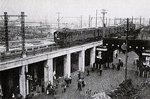 The line was electrified on December 16, 1909, soon after the Osaki – Shinagawa section was double-tracked on November 30. The loop was completed in 1925 with the opening of the double track, electrified section between Kanda and Ueno on 1 November, providing a north-south link via Tokyo Station through the city's business centre.[15] A parallel freight line, also completed in 1925, ran along the inner side of the loop between Shinagawa and Tabata.