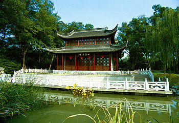 In this garden, which lies on the banks of the Xiading River at the city's northern limits, the Qing Dynasty poet Wang Yuyang and a circle of friends used to gather to recite their works. The thatched roofs of the pavilions in this garden give it a quaint, rustic air.
