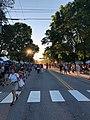 A pipe band partaking in the parade at the 2016 festival