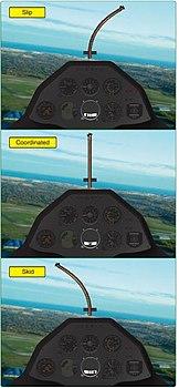 Yaw strings are also fitted to the Lockheed U-2 high-altitude surveillance aircraft.[14] A flat spin, caused by excessive sideslip even in level flight, happens much more easily at high altitudes. Some light twin-engine airplane pilots place yaw strings on their aircraft to help maintain control in the event of an engine failure, because the slip-skid indicator ball is not accurate in this case.[15] In a multiengine airplane with an inoperative engine, the centered ball is no longer the indicator of zero sideslip due to asymmetrical thrust. The yaw string is the only flight instrument that will directly tell the pilot the flight conditions for zero sideslip.[16]
