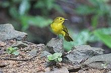 The yellow-browed bulbul has been considered as the wet-zone counterpart of the dry-zone white-browed bulbul.[4] It is found mainly below the forest canopy of the hill forests and plantations in the Western Ghats and Sri Lanka. They also occur in parts of the Eastern Ghats including the Kolli hills,[9] Nallamalas and parts of Tirupathi and Mamandur regions in Andhra Pradesh.[10][11]