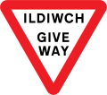 In Wales, some signs bear a bilingual legend: the Welsh ildiwch appears above give way.