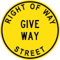 In Australia, the Give Way sign evolved similarly to its counterpart in the United States. During the 1940s and 1950s, the sign was circular and yellow. In 1964, the sign changed to a red triangle. In the 1980s, the sign adopted its modern design and gained a counterpart for use at roundabouts.