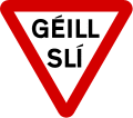 In road signs in Ireland, the yield sign reads yield in most areas, although in Gaeltacht (Irish-speaking) areas the text is géill slí ("yield way"[7]) instead.[8][9] Signs erected between 1962 and 1997 read yield right of way,[10] which remains legally permitted.[9] Signs 1956–62 had a blank white interior.[11]