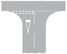 The United Kingdom's Road Traffic Act calls for give way signs and road markings at junctions (crossroads) where the give-way rule is to apply. The road marking accompanying the sign consists of a large inverted triangle painted just before the place to give way, which is marked by broken white lines across the road.[13]