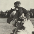 In the 1930s, the initial physical mascot was a live blue chicken that was tended to by members of the cheerleading team.[6][7][8] It is unclear if it was a blue hen, or a chicken with blue feathers, as it is believed there are no true descendants of "fighting blue hens of Revolutionary War times."[9]