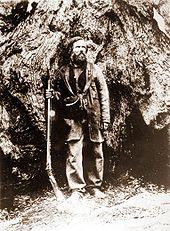 The first non-Native Americans to see Yosemite Valley were probably members of the 1833 Joseph Walker Party, which was the first to cross the Sierra Nevada from east to west.[12] The first descriptions of Yosemite, however, came nearly 20 years later. The 1849 California Gold Rush led to conflicts between miners and Native Americans,[13] and the state formed the volunteer Mariposa Battalion as a punitive expedition against the Native Americans living in the Yosemite area. In 1851, the Battalion was led by Major Jim Savage, whose trading post on the Merced River the Awaneechee had raided.[14] This and other missions (the Mariposa Wars) resulted in Chief Teneiya and the Awaneechee spending months on a reservation in the San Joaquin Valley. The band returned the next year to the Valley but took refuge among the Mono Paiutes after further conflicts with miners. Most of the Awaneechee (along with Teneiya) were chased back to the Valley and killed by the Paiutes after violating hospitality by stealing horses.