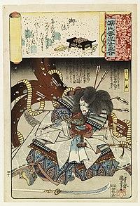 - ^ A major and famous battle, conflated here with the later battle of Dan-no-ura which marked the end of the Genpei War, and in which many of the Taira leaders perished.