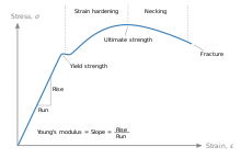 Young's modulus , the Young modulus or the modulus of elasticity in tension, is a mechanical property that measures the tensile stiffness of a solid material. It quantifies the relationship between tensile stress (force per unit area) and axial strain (proportional deformation) in the linear elastic region of a material and is determined using the formula:[1]