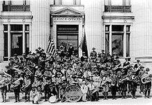 The Young Men organization was involved in Scouting from 1911 with the formation of their MIA Scouts until the end of 2019. The YMMIA Scouts merged with Boy Scouts of America (BSA) on May 21, 1913, with the church becoming the first chartering organization, with John H. Taylor as the first LDS Scout Commissioner. In 1928, the Boy Scouts was named the church's official youth program for boys ages 12 to 16.[3] Young Men organizations in other countries were not involved in Scouting. In the United Kingdom and in other Commonwealth countries, some local groups participated in the Duke of Edinburgh's Award Scheme or its equivalent. As of January 1, 2018, the church withdrew from Varsity and Venturing scouting programs, with boys ages 8 to 13 still enrolled in the Cub Scouts and Boy Scouts.[4] In May 2018, the church announced that they would completely withdrawal from all BSA programs at the end of 2019.[5][6] In October 2019, the church announced that ward Young Men presidencies would be discontinued,[7] and implemented the church's newly created "Children and Youth Program" at the beginning of 2020[8]