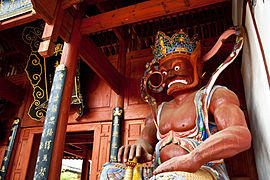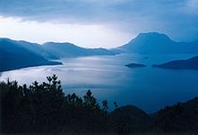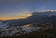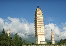 The name "Yunnan" first referred to a place when the Han dynasty created Yunnan County near modern Xiangyun.[11] During the Tang dynasty, Emporor Xuanzong gave Piluoge, the chief of Nanzhao, the title of "King of Yunnan",[12] because Nanzhao originated from Yunnan county.[13] Gradually the king of Yunnan controlled more and more territory, and "Yunnan" became the common name of this area.[14] Therefore, the Yuan dynasty created the Yunnan Province after he occupied Dali Kingdom.[12]