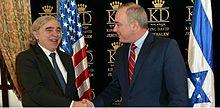 - Iran Nuclear Program – Steinitz coordinated the Israeli diplomatic efforts vis-à-vis the P5+1 and the rest of the international community. He met regularly with senior officials dealing with Iranian issue including Vice President Joe Biden, the Chief US nuclear negotiator with Iran Bill Burns and Wendy Sherman, and the Foreign Ministers of Britain, France, and Germany. He also met the heads of intelligence in those countries, like the heads of the CIA and DNI in the US or the MI6 in Britain. During those meetings, Steinitz emphasized the size of the threat to Israel and the whole world as a result of Iran's military nuclear program.[45][46] In the interim Agreement he convinced the French delegation to insist on limiting Iranian Uranium enrichment to 3.5% level. This limitation was included in the final agreement as well. According to Steinitz, the Israeli involvement and input did have a significant impact on both the interim and final agreements with Iran.[47]