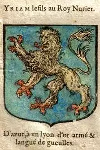 The French poet Chrétien de Troyes wrote the romance Yvain, the Knight of the Lion at the same time he was working on Lancelot, the Knight of the Cart during the 1170s. In it, Yvain seeks to avenge his cousin Calogrenant who had been defeated by an otherworldly knight beside a magical storm-making fountain in the forest of Brocéliande. Yvain defeats the knight, Esclados, and falls in love with his widow Laudine. With the aid of Laudine's servant Lunete, Yvain wins his lady and marries her, but his cousin Gawain convinces him to embark on chivalric adventure. Yvain's wife assents but demands he return after a set period of time, but he becomes so enthralled in his knightly exploits that he forgets his lady, and she bars him from returning. Yvain goes mad with grief and lives naked in the woods (probably the earliest instance of a hero's mental illness in French literature, which later became a popular motif[1]), but eventually is cured and decides to win back his love. A lion he rescues from a giant serpent proves to be a loyal companion and a symbol of knightly virtue, and helps him complete his quest. In the end, Laudine allows him and his lion to return to her fortress.