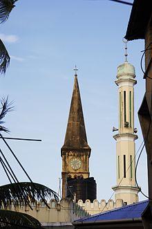 The places of worship in the city are predominantly Muslim mosques.[62] There are also Christian churches and temples: Roman Catholic Diocese of Zanzibar (Catholic Church), Anglican Church of Tanzania (Anglican Communion), Evangelical Lutheran Church in Tanzania (Lutheran World Federation), Baptist Convention of Tanzania (Baptist World Alliance), Assemblies of God.