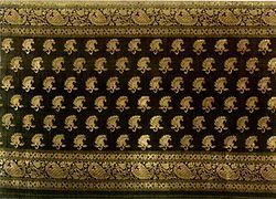 Zari (or Jari) is an even thread traditionally made of fine gold or silver used in traditional Indian, Bangladeshi and Pakistani garments, especially as brocade in saris etc.[1] This thread is woven into fabrics, primarily of silk, to make intricate patterns and elaborate designs of embroidery called zardozi. Zari was popularised during the Moghul era, the port of Surat was linked to the Meccan pilgrimage route which served as a major factor for re-introducing this ancient craft in India.[2] During the Vedic ages, the gold embroidery was associated with the grandeur and regal attire of gods, kings, and literary figures (gurus){as shown in the movies}.