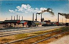 In 1847, the Warsaw-Vienna Railway was completed. The railroad connection facilitated the trade between Russia, Germany and Austria. The fact that Zawiercie was located less than one kilometre from the railroad triggered the rapid development of the region. Twenty-five years later, there were coal and iron ore mines in Zawiercie and an industry was developed around the mines in the town. The first industrial plant, a glass factory, started around 1870. Immediately other industries followed; a large cotton spinnery, large weaving mill, iron mining, cast iron, brick manufacturing, sawmill, chemical laboratories, steam and water flour mills, machining, etc. The flourishing economics accelerated the local population growth.