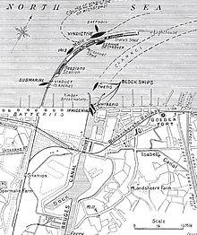 The Zeebrugge Raid (Dutch: Aanval op de haven van Zeebrugge; French: Raid sur Zeebruges) on 23 April 1918, was an attempt by the Royal Navy to block the Belgian port of Bruges-Zeebrugge. The British intended to sink obsolete ships in the canal entrance, to prevent German vessels from leaving port. The port was used by the Imperial German Navy as a base for U-boats and light shipping, which were a threat to Allied control of the English Channel and southern North Sea. Several attempts to close the Flanders ports by bombardment failed and Operation Hush, a 1917 plan to advance up the coast, proved abortive. As ship sinkings by U-boats increased, finding a way to close the ports became urgent and the Admiralty became more willing to consider a raid.