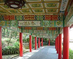 Zhinan Temple (Chinese: 指南宮; pinyin: Zhĭnán Gōng; also called Chinese: 仙公廟, Xiāngōng Miào; also unofficially anglicized as "Chihnan" or "Jhihnan") is a Taoist temple on the slopes of Houshan (猴山, "Monkey Mountain") in Muzha, a suburb of Taipei, Taiwan. It was founded in 1882. The temple's main deity is Lü Dongbin, one of the Eight Immortals. As Lü is said to dwell in the southern courtyard of the heavenly court, the temple acts as a compass pointing toward the south (指南, zhĭnán); hence the name.
