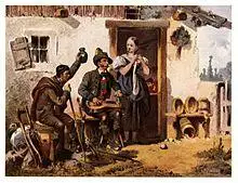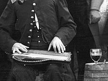 The word 'zither' is derived from Latin cythara, which was used in this form for the title covers on many 16th and 17th century German printed manuscript books originally for the 'cittern' – from the Greek word kithara, an instrument used in Ancient Greece.[4] The German scholar Michael Praetorius mentions an Englishman who came to Germany with a small cittern, einem kleinen Citterlein, in his treatise Syntagma Musicum, published during the early 17th century.[5] It is not fully understood how 'zitter' or 'zither' came to be applied to the instruments in this article as well as German varieties of the cittern. Other types of zither also existed in Germany, mostly drone zithers like the scheitholt (which was mentioned by Praetorius) or hummel, but these generally have their own individual regional names and may have been in use before the introduction into the lexicon of 'cythara' and its German derivative cognate.