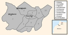 The Sanhaja (Berber languages: Aẓnag, pl. Iẓnagen, and also Aẓnaj, pl. Iẓnajen; Arabic: صنهاجة, Ṣanhaja or زناگة Znaga) were once one of the largest Berber tribal confederations, along with the Zanata and Masmuda confederations.[1] Many tribes in Morocco, Western Sahara and Mauritania bore and still carry this ethnonym, especially in its Berber form. Other names for the population include Zenaga, Znaga, Sanhája, Sanhâdja and Senhaja.