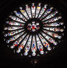 The zodiac is found in medieval stained glass as at Angers Cathedral, where the master glassmaker, André Robin, made the ornate rosettes for the North and South transepts after the fire there in 1451.[32]