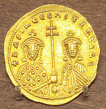 When Basil II died, Constantine VIII took the throne. His reign as sole emperor lasted less than three years, from 15 December 1025 to 11 November 1028.[3] Another opportunity for Zoë to marry arose in 1028, when an embassy from the Holy Roman Empire arrived in Constantinople with a proposal for an imperial marriage. Constantine and Zoë rejected the idea out of hand when it was revealed that the intended groom, Henry, the son of Conrad II, was only ten years old.[6] Constantine determined that the ruling house would be continued by one of his daughters being married to an appropriate aristocrat. The first potential match was the distinguished noble Constantine Dalassenos, the former dux of Antioch.[9] The emperor's advisors preferred a weak ruler whom they could control and they persuaded him to reject Dalassenos after he had already been summoned to the capital.[5] Romanos Argyros, the urban prefect of Constantinople, was the next to be considered as a match.[5] Theodora defied her father by refusing to marry Romanos, arguing that he was already married – his wife having been forced to become a nun to allow Romanos to marry into the imperial family[10]:465 – and that as third cousins they had too close a blood relationship for marriage to occur.[11] Consequently, Constantine VIII chose Zoë to be Romanos's wife.[11][12] Zoe and Romanos married on 10 November 1028 in the imperial chapel of the palace. The next day Constantine died and the newly-weds were seated on the imperial throne.[13]