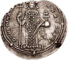 Zoë then remembered the handsome and urbane[41] Constantine Monomachos, another former lover.[20] The pair were married on 11 June 1042, without the participation of Patriarch Alexios, who refused to officiate over a third marriage (for both spouses).[43] On the following day Constantine was formally proclaimed emperor together with Zoë and Theodora.[43]