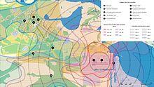 In-depth studies were conducted from 1992–93, culminating the updating of the 1991 law followed by further evacuations from the Polesia area.[7] A number of evacuation zones were determined: the "Exclusion Zone", the "Zone of Absolute (Mandatory) Resettlement" and the "Zone of Guaranteed Voluntary Resettlement", as well as many areas throughout Ukraine designated as areas for radiation monitoring.[8] The evacuation of contaminated areas outside of the Exclusion Zone continued in both the compulsory and voluntary resettlement areas, with 53,000 people evacuated from areas in Ukraine from 1990 to 1995.[6]