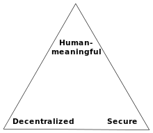 - ^ Zooko Wilcox-O'Hearn. "Names: Decentralized, Secure, Human-Meaningful: Choose Two". Archived from the original on 20 October 2001.