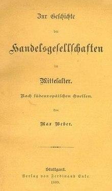 Zur Geschichte der Handelgesellschaften im Mittelalter is a doctoral dissertation written in 1889 by Max Weber, a German economist and sociologist. The original edition was in German and the title is actually translated as The history of commercial partnerships in the Middle Ages.